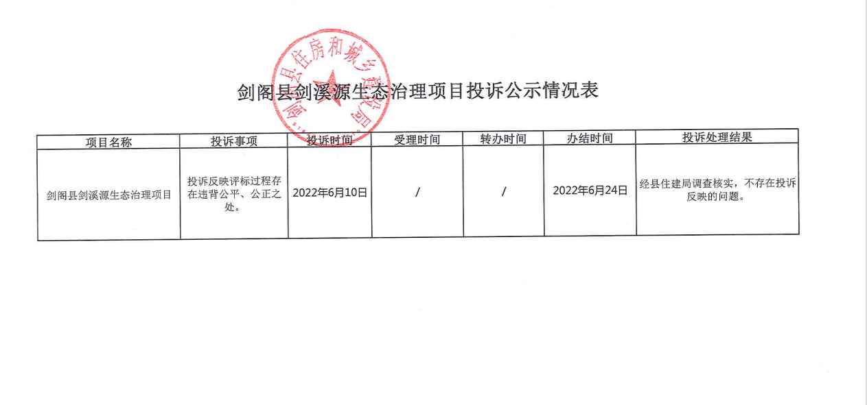 劍閣縣劍溪源生態(tài)治理項目投訴公示