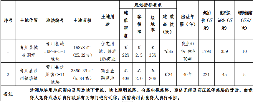 四、本次拍賣出讓的詳細資料和具體要求,詳見拍賣出讓文件。申請人可于2021年8月1日至2021年8月23日工作日內(nèi),到青川縣自然資源局或廣元市拍賣有限公司獲取拍賣出讓文件。