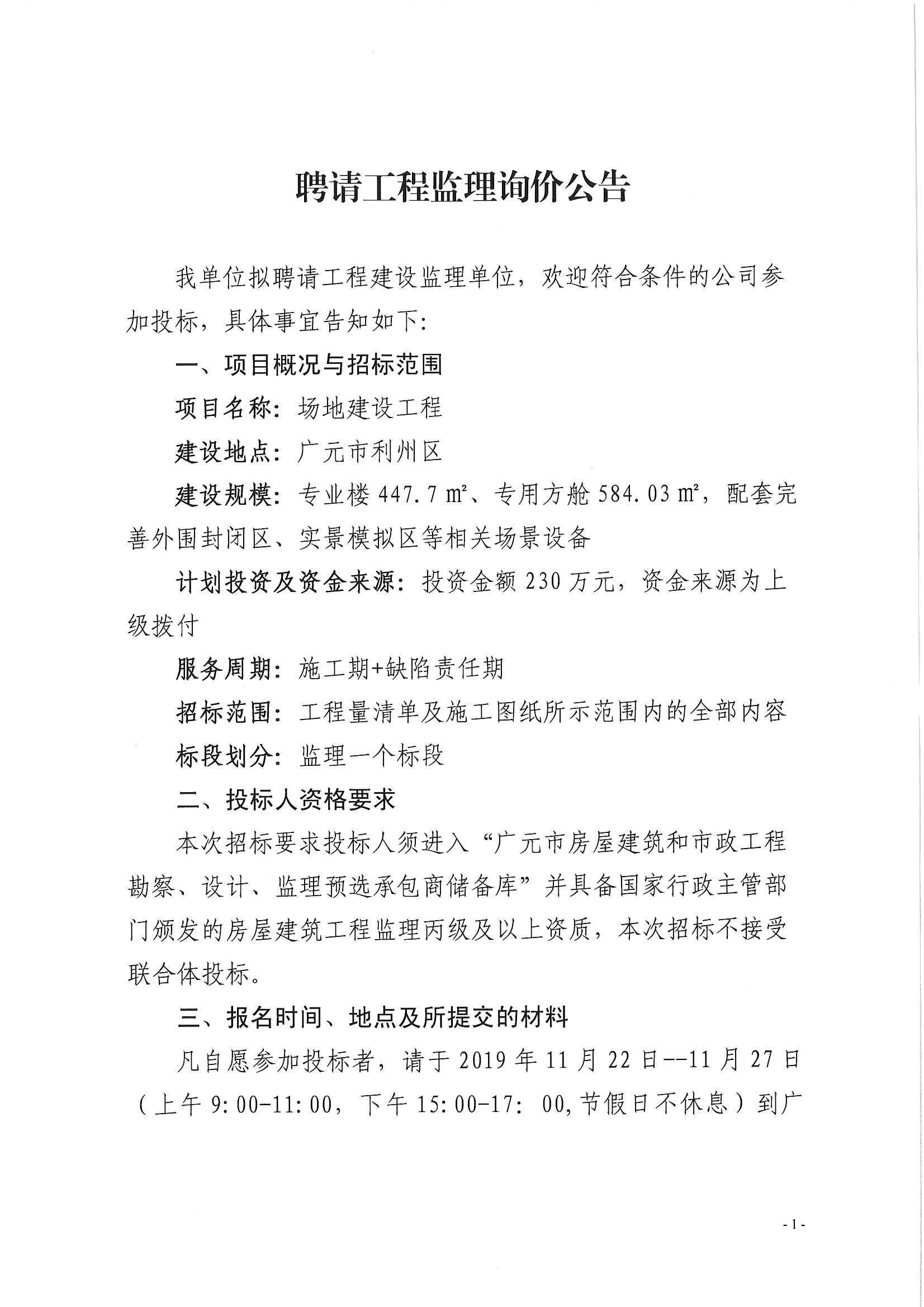 聘請(qǐng)工程監(jiān)理詢價(jià)公告