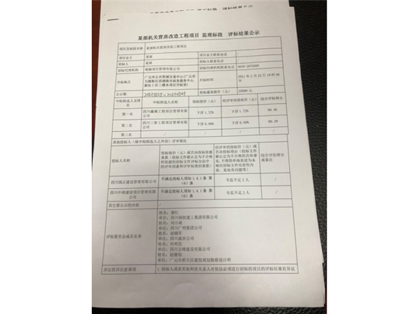 某部機(jī)關(guān)營房改造工程項(xiàng)目施工及監(jiān)理評(píng)標(biāo)結(jié)果公示