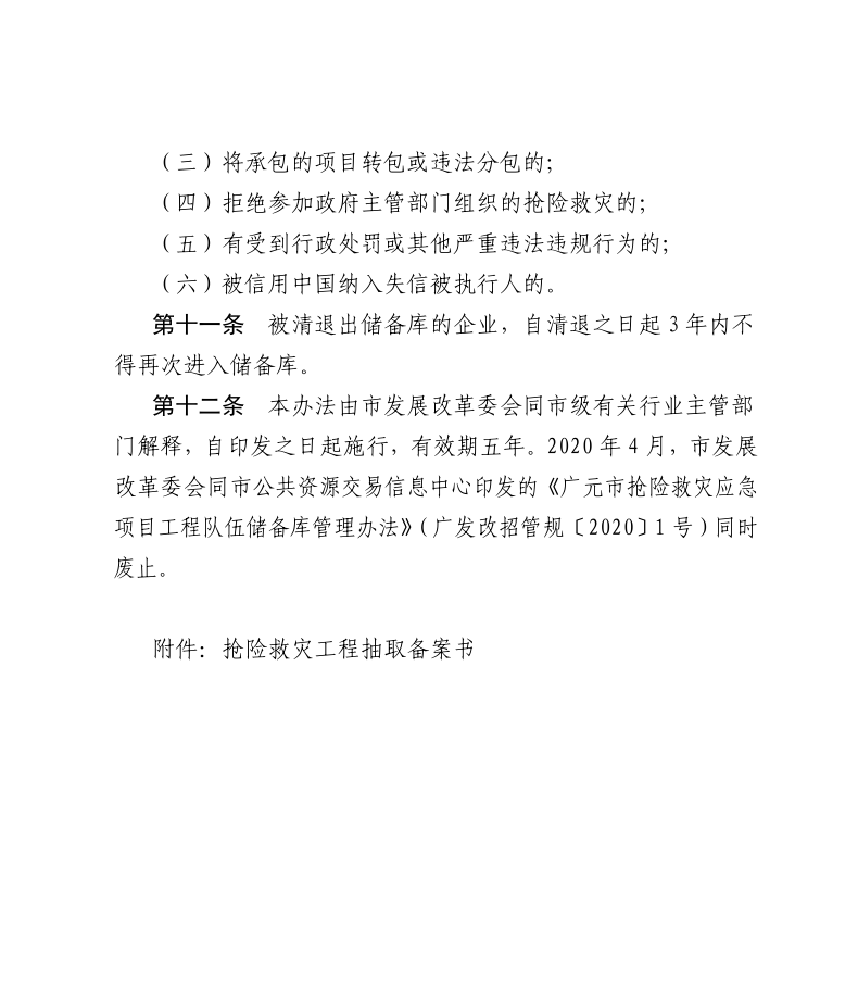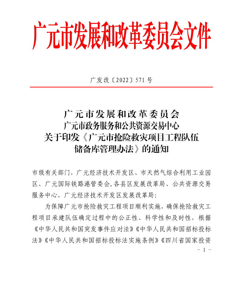關(guān)于印發(fā)《廣元市搶險(xiǎn)救災(zāi)項(xiàng)目工程隊(duì)伍儲(chǔ)備庫(kù)管理辦法》的通知.pdf
