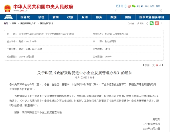 1.文件截圖{《財(cái)政部 工業(yè)和信息化部關(guān)于印發(fā)<政府采購(gòu)促進(jìn)中小企業(yè)發(fā)展管理辦法>的通知》(財(cái)庫(kù)〔2020〕46號(hào))}